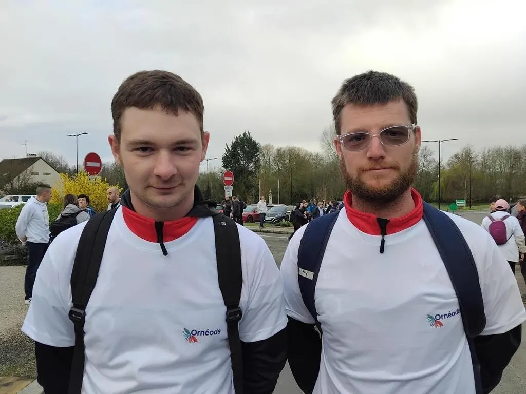Dylan Martel et Dylan Papouin sont sportifs, ils jouent au foot, et là , ils étaient ravis de participer à la randonnée d’Alençon-La Croix-Médavy. © Ouest-France