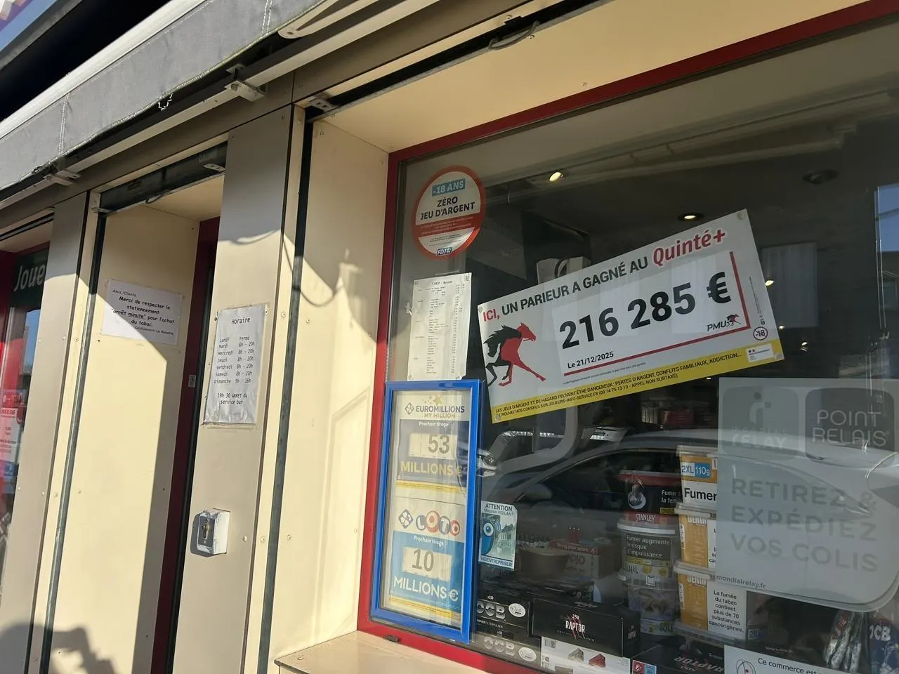 Un beau cadeau avant les fêtes. Dimanche 21 décembre 2025, un heureux parieur a remporté la somme de 216 285 € au Quinté + dans le bar-tabac La Rainette à Saint-Georges-des-Groseillers (Orne).