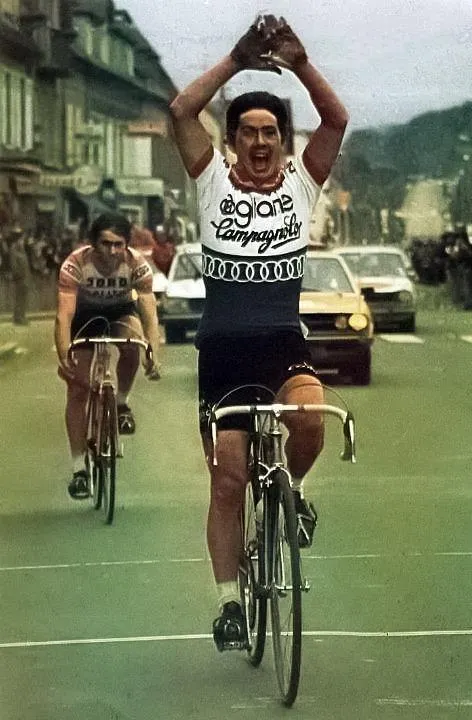 Raymond Martin s’était offert sa première victoire sur la course Paris – Camembert Lepetit à Vimoutiers (61) le 1er avril 1975 après 237 km effectués en cinq heures et 29 minutes, soit une moyenne de 43,2 km/. © Ouest-France archives