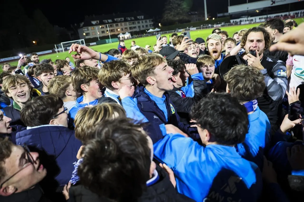 La liesse après la victoire, sur le terrain du stade Henry-Jeanne de Bayeux (Calvados). © Charles Bury / Ouest-France