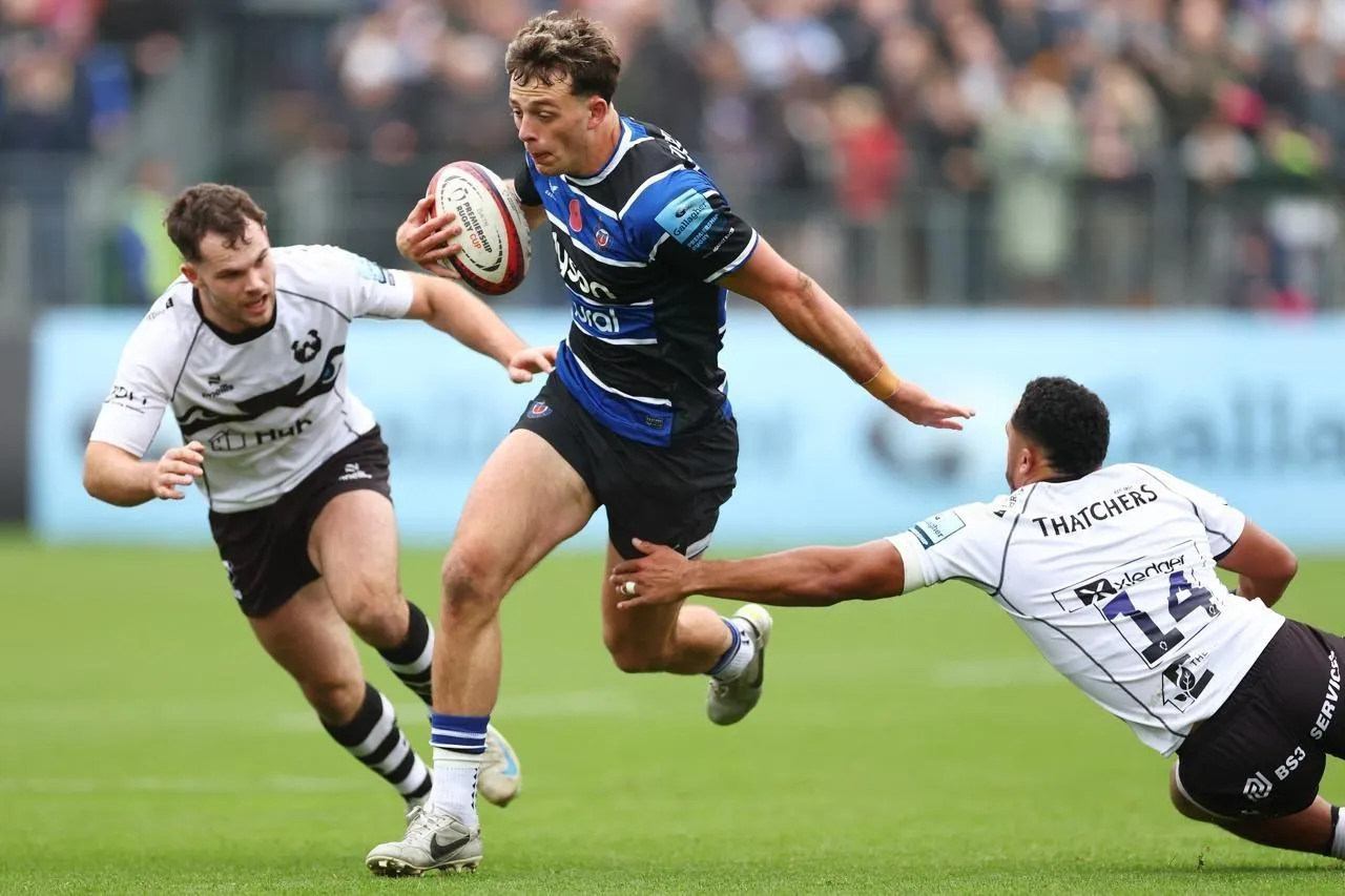 Louie Hennessey avec le maillot de Bath. DAN ISTITENE / Getty Images via AFP