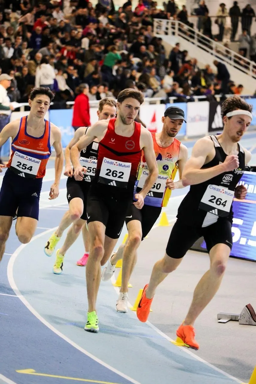 Pierre Lechat (au centre) est le seul Ornais engagé lors des championnats de France indoor, ce week-end, à Aubière (Puy-de-Dôme). © O’millimètre/Lucie