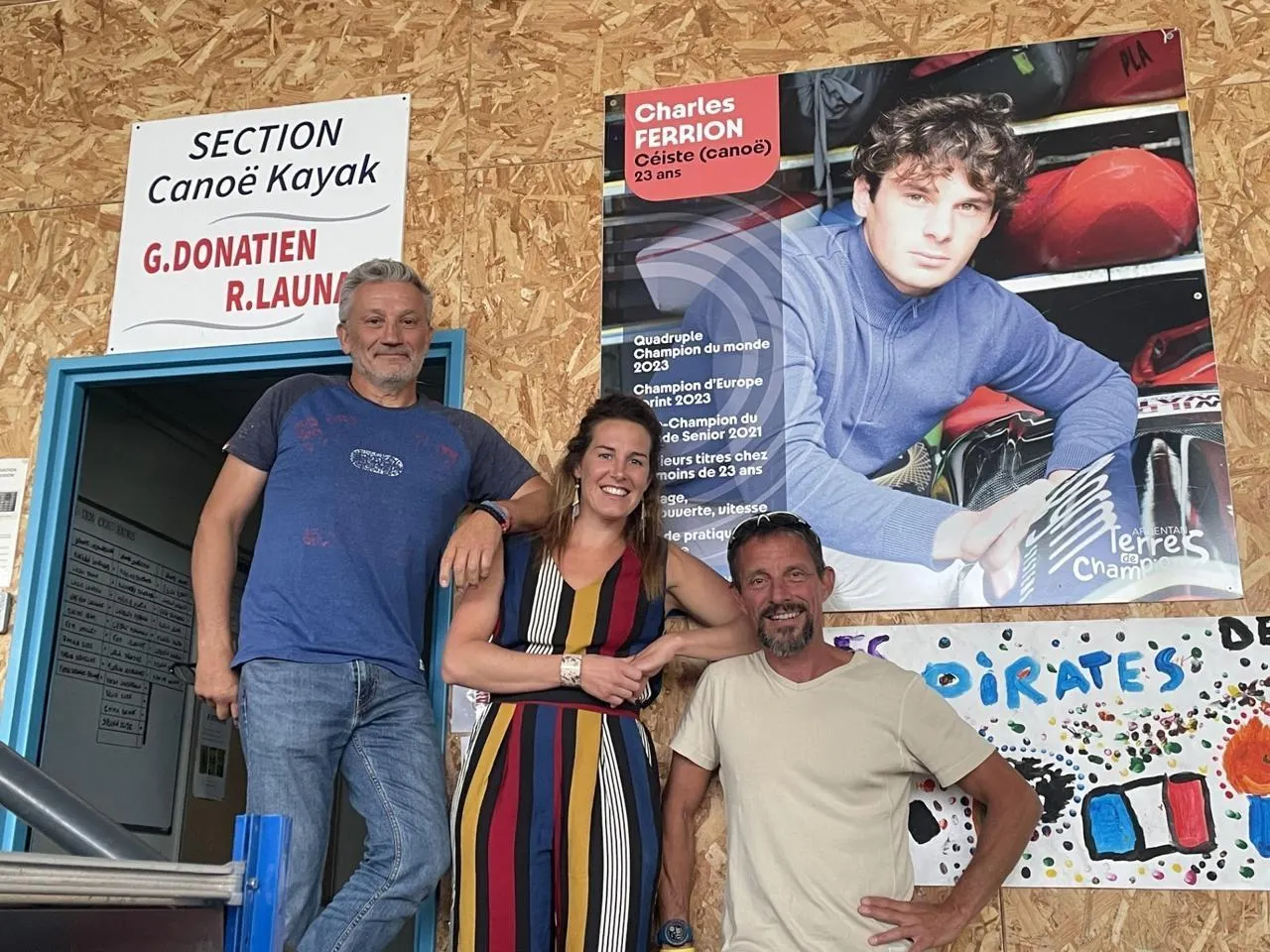 Emmanuel Flouvat, Claire-Émilie Simon et Régis Eude (de gauche à droite) sont le relais entre les fondateurs qui ont donné leur nom à la base de canoé du PL et la génération actuelle symbolisée par le champion du monde Charles Ferrion.? © Ouest-France
