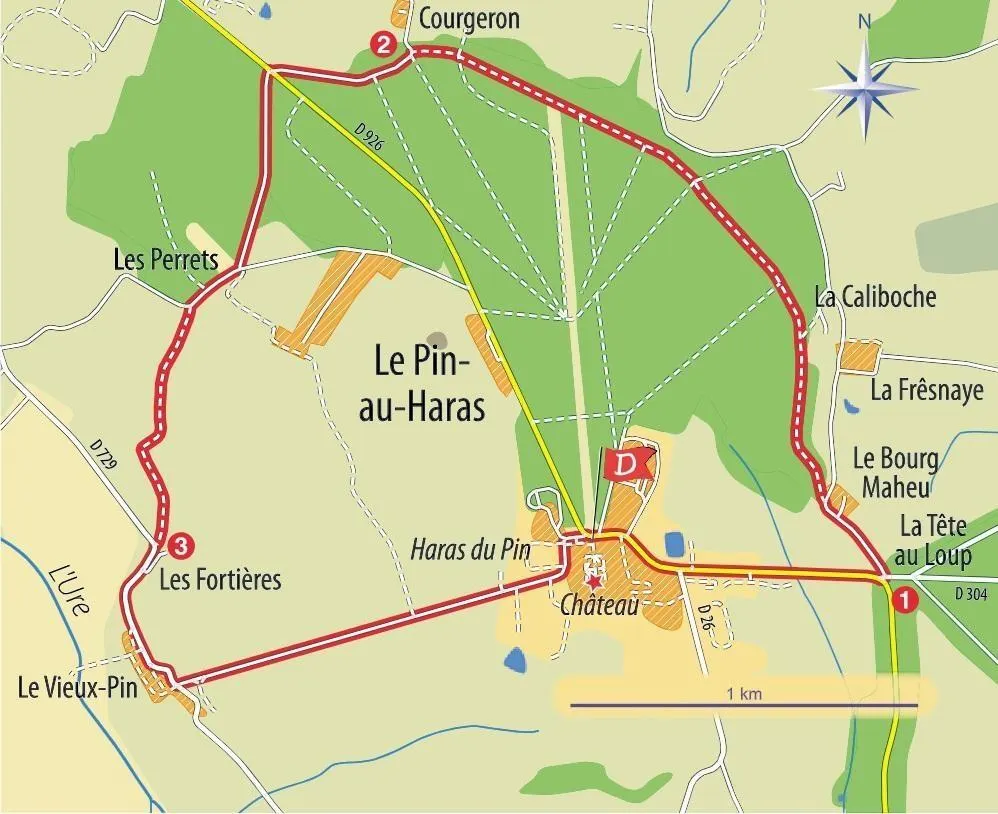 Accès : D’Argentan, empruntez vers l’est la D926 jusqu’au haras du Pin. Garez-vous sur le parking du haras.