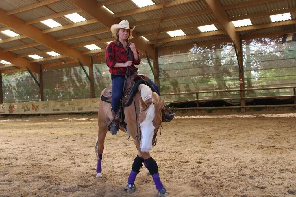 La cavalière franco-américaine d’équitation western, qui s’entraîne dans la région de Vimoutiers (Orne) avec sa jument Goldie-Gun, se remet à la compétition après être devenue maman. Elle se prépare notamment pour un derby international qui se déroulera en mai 2025, au parc équestre Le Petit Far West, en Seine-et-Marne.