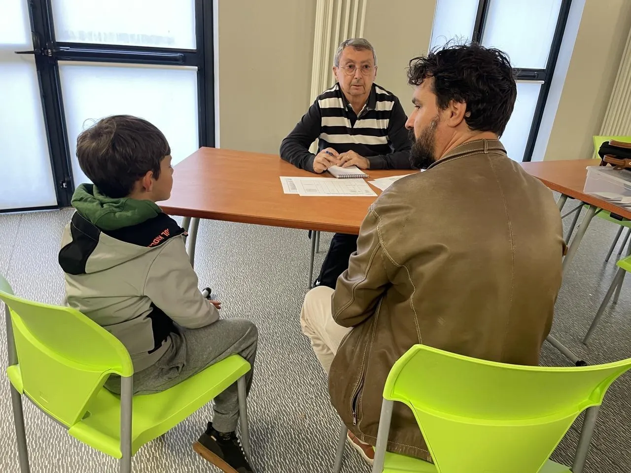 Maxime Gigon, à droite, a inscrit son fils Gabriel au club de basket d’Alençon (Orne), mercredi 3 septembre 2025, malgré un avenir incertain depuis la rétrogradation de l’équipe phare. © Ouest-France