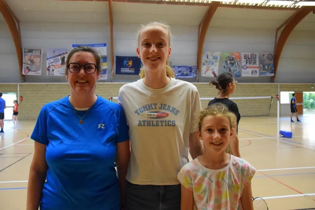 Dans son sillage, Margaux Gérouard a entraîné sa maman, Marina et sa petite sœur Agathe, 10 ans. Toutes trois tapent le volant de badminton à Saint-Hilaire-du-Harcouët (Manche). © Ouest-France