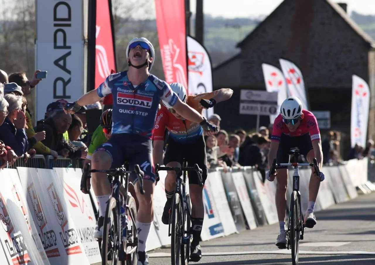L’équipe Soudal Quick-Step (ici Thibault Van Damme, vainqueur l’an passé à Montenay) figurera parmi les formations ambitieuses. Louka Macé sera l’une des bonnes chances françaises. © Jacques Chaudet