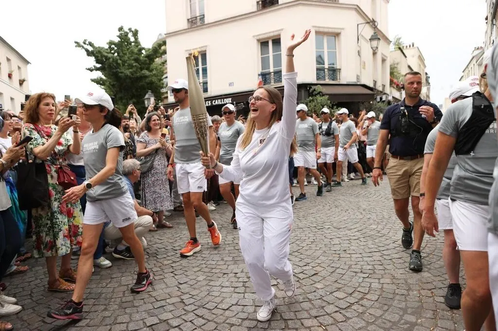 Noémie Varon a porté la flamme olympique, le 15 juillet 2024 à Paris. Réal des Mêmes