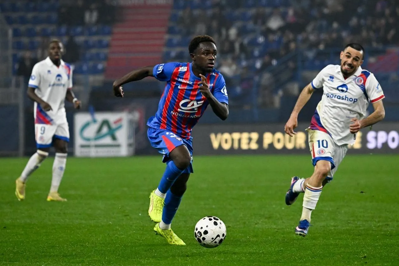 Josue Kimboma et le SM Caen sont au Puy vendredi 13 mars 2026, pour le compte de la 25e journée de National. © Martin Roche / Ouest-France