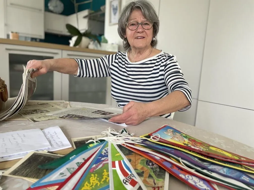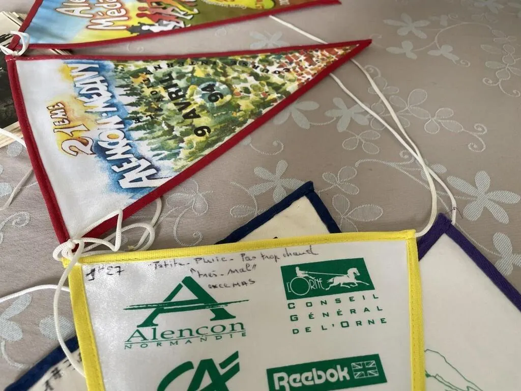 Pierrette Thibault a participé à une trentaine d’éditions d’Alençon – Médavy, elle a conservé tous les fanions. © Ouest-France