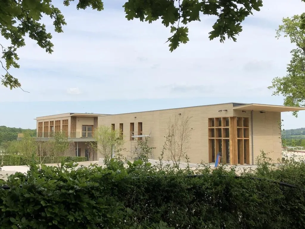 Au Haras du Pin, le bâtiment d'accueil des compétitions et le restaurant (à gauche) sont terminés. © Ouest-France