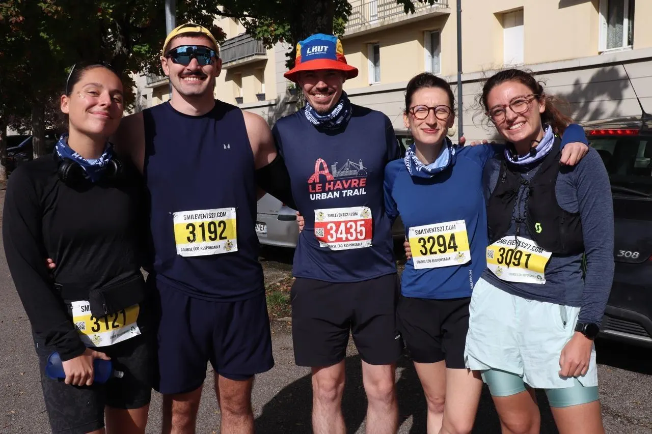 De gauche à droite : Claire Dubois, Léo Grippon, Alain Virouleau, Margaux Machefert et Joséphine Couturier. Cette bande d’amis est venue du Havre pour participer à la 39e édition du semi-marathon d’Argentan. © Ouest-France