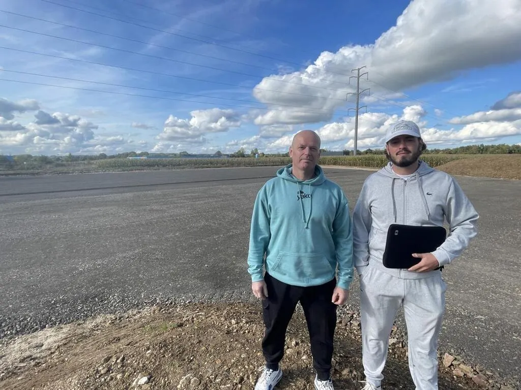 photo  didier gendron et son fils léo, devant le chantier du futur complexe sportif dédié au padel.  ©  ouest-france 5
