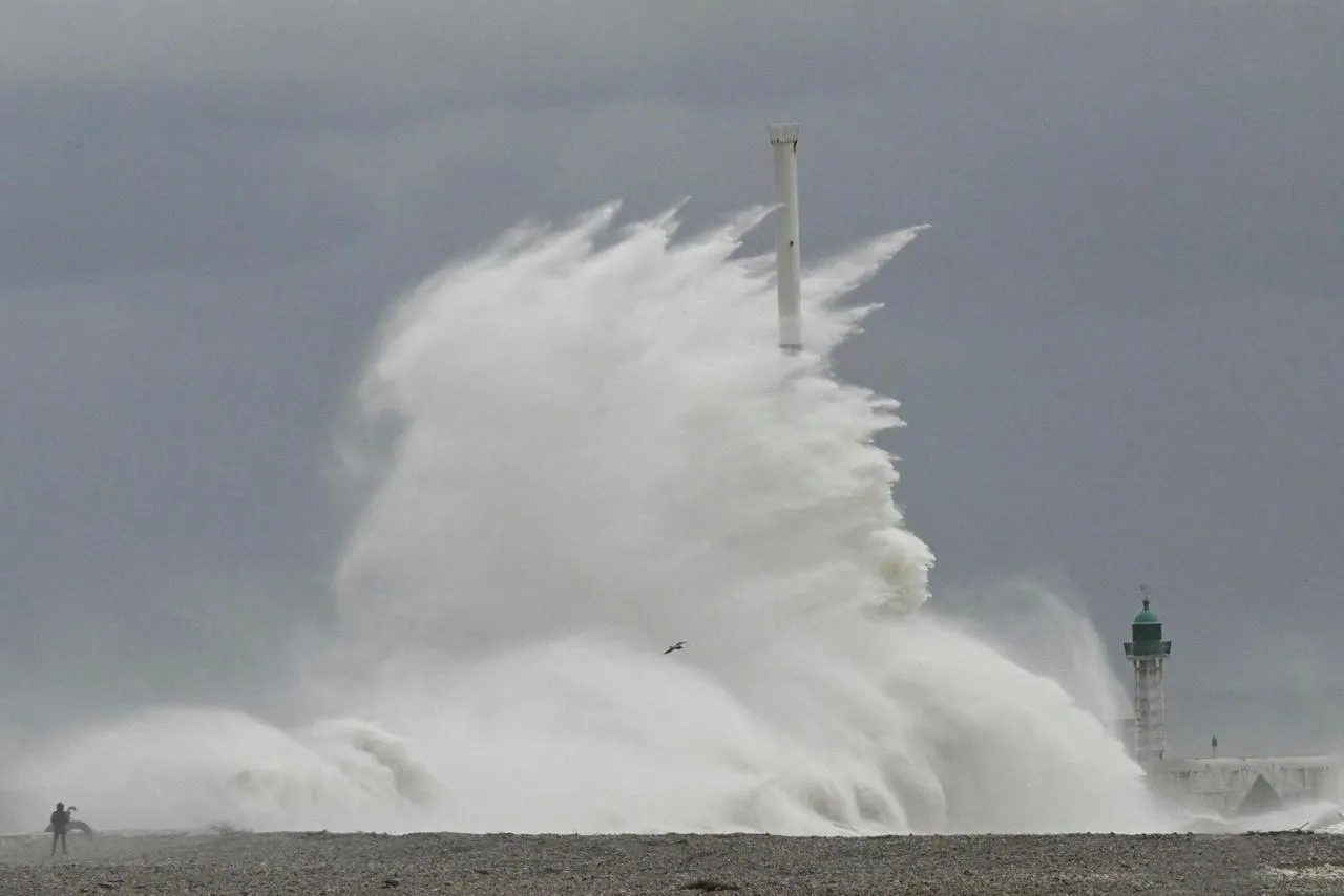Jeudi 23 octobre, la mer se déchaîne lors du passage de la tempête Benjamin. Ici, une vue sur la digue du Nord et son phare au Havre (Seine-Maritime). Thomas Brégardis / Ouest-France