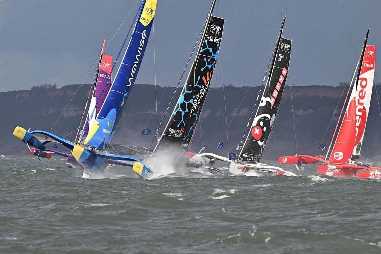 Samedi 25 octobre, les Ocean Fifty se sont élancés du Havre dans des conditions « sportives ». David Ademas / Ouest-France