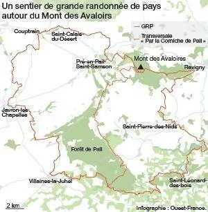 Le comité départemental de randonnée pédestre de la Mayenne vient d’éditer un topoguide sur le sentier de grande randonnée de pays du tour du Mont des Avaloirs. Une randonnée en itinérance de 104 km sur cinq jours, avec des passages dans l’Orne et dans la Sarthe.