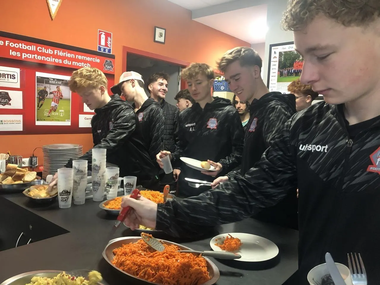 Carottes râpées et taboulé au menu pour les U18 du FC Flers. © Ouest-France