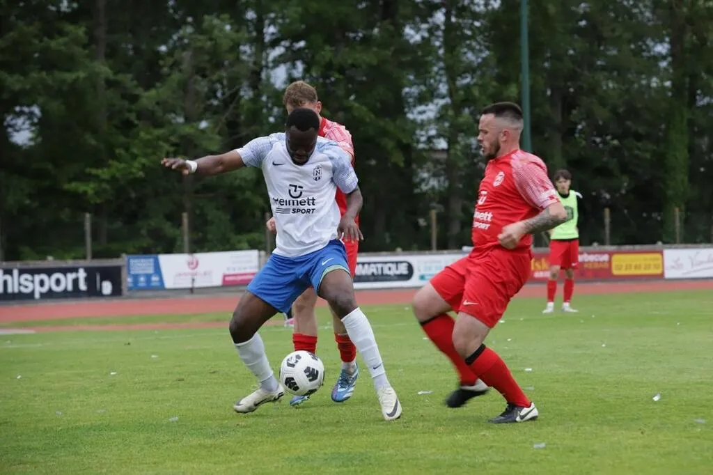 La finale seniors de la Coupe de Normandie, ce samedi 24 mai 2025 à Flers (Orne), a démarré fort. Bien trouvé dans l’axe, Koné Abdul se procurait la première occasion, mais sa frappe s’envolait (4’).