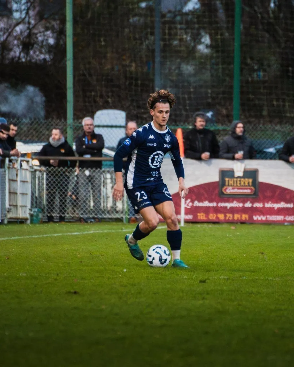 Oscar Verneau et les Virois sont revenus à hauteur du leader guingampais en gagnant face à Plabennec, samedi 5 avril 2025. © Quentin Travert / Vire AF