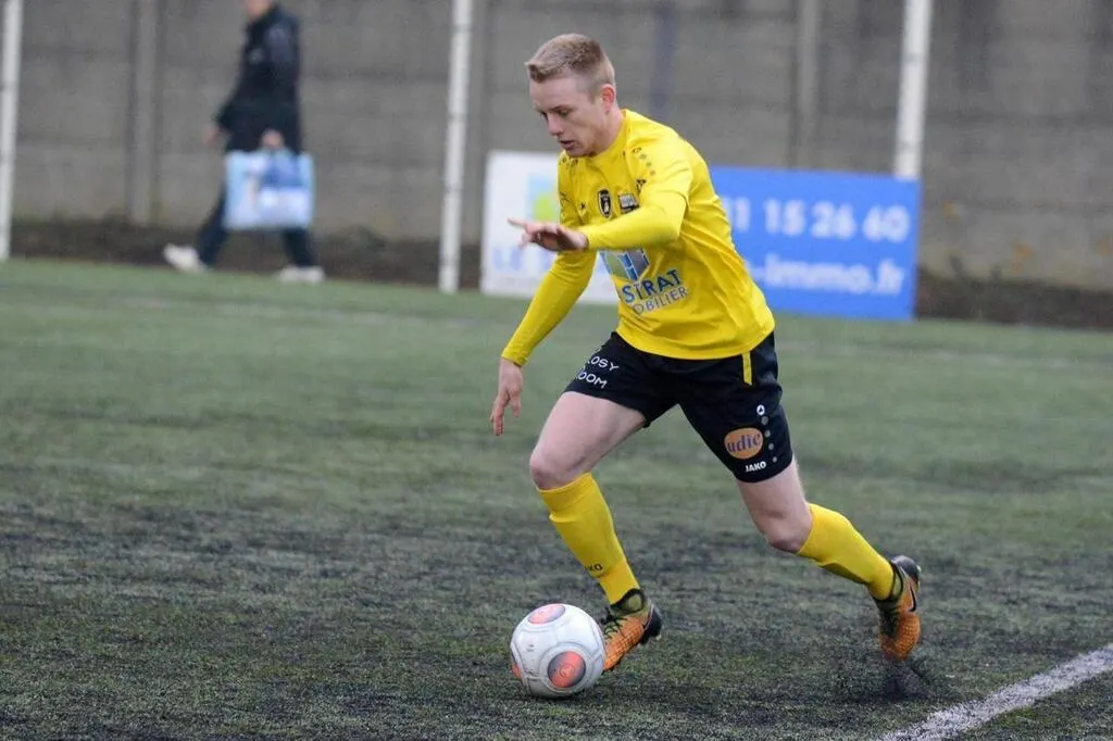Le Mondevillais Édouard Ozanne (ici sous les couleurs de son ancien club, ASPTT Caen, qu’il a quitté à l’été 2020) a inscrit un triplé contre Ducey-Isigny, samedi 10 octobre 2020. © Archives Ouest-France