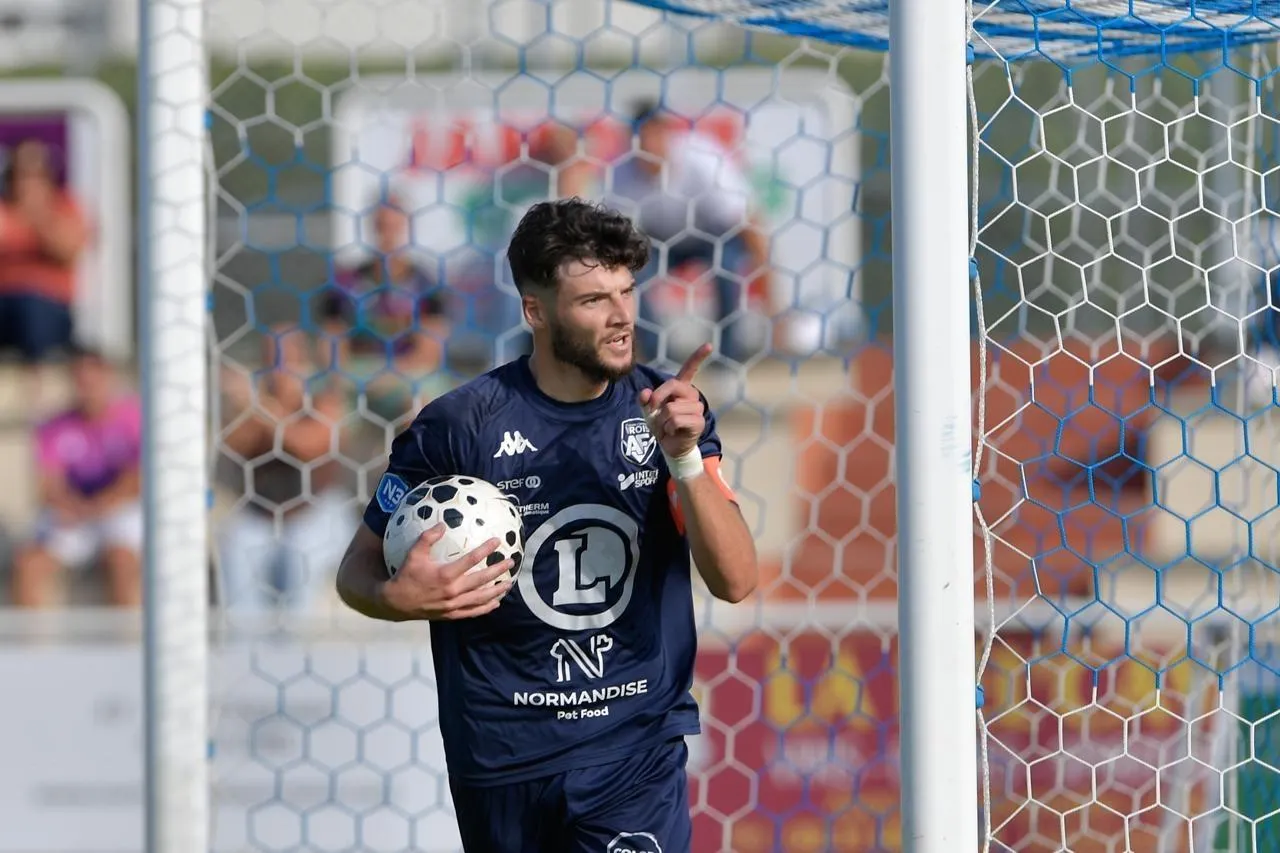 Le capitaine virois, Dorian Charlier, a signé son retour en Normandie par un but en renard des surfaces pour remettre son équipe sur les bons rails. © Guillaume MARIE
