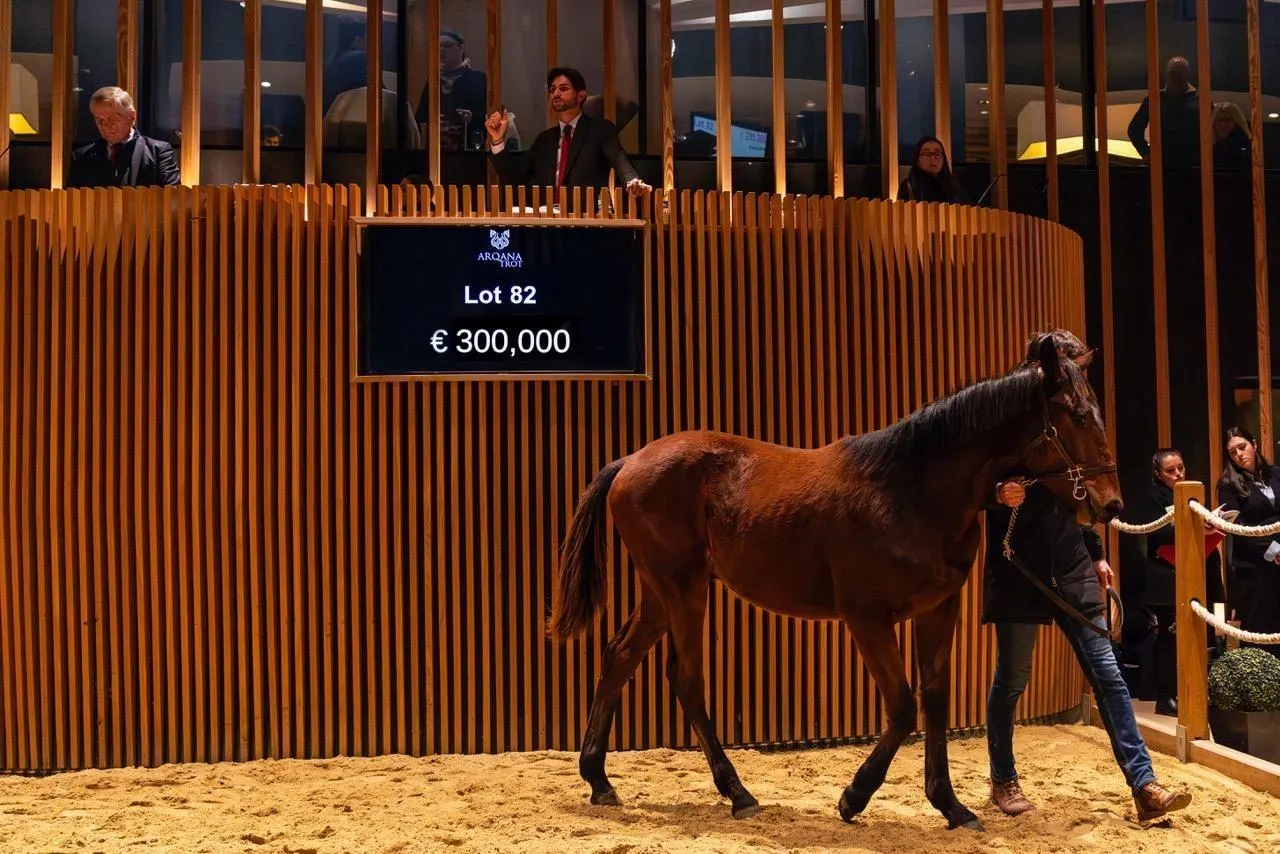 Le jeune Powerball a été adjugé pour 300 000 €, mercredi 21 janvier 2026. Un record pour un si jeune trotteur. © Elise Fossard Photography