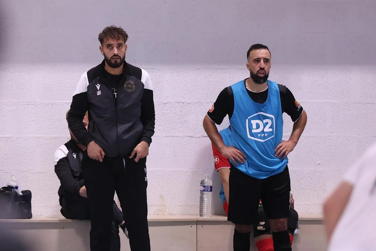 Nabil Alla (à droite) et Hérouville futsal ont vécu un scénario cruel à Villepinte, samedi 14 mars 2026. © Marc Olejnik