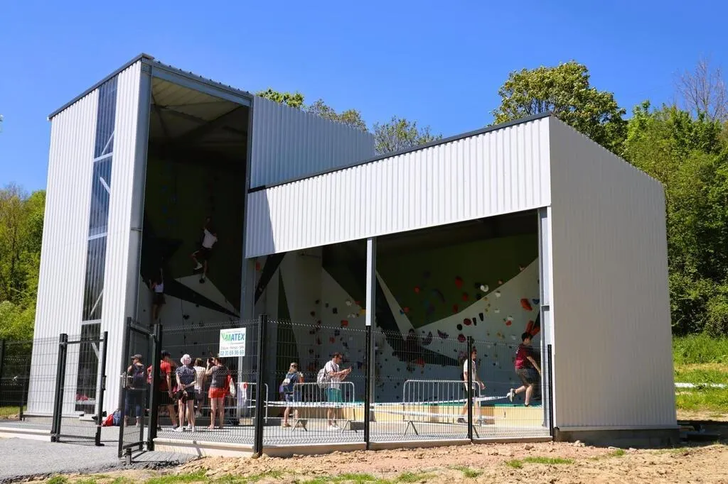 Le mur d’escalade, nouvel équipement de Pont-d’Ouilly Loisirs, installé en mai 2024. Une structure couverte qui permet de pratiquer et d’apprendre les techniques d’escalade. Des séances sont en cours de négociation avec les clubs de Flers (Orne) et de Falaise. L’accès au mur d’escalade en autonomie n’est pas encore validé par POL. © Ouest-France