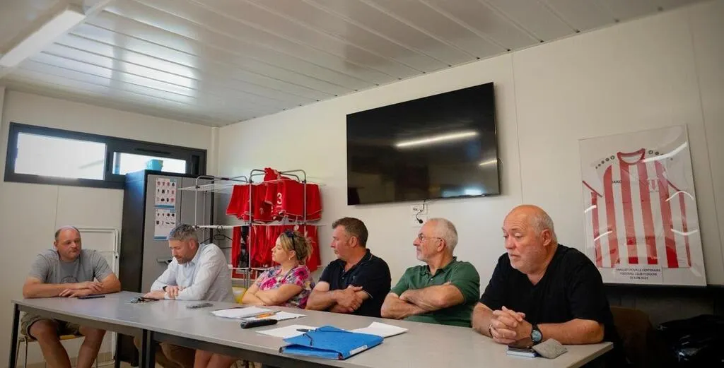 Le bureau du Football-club d’Écouché, lors de son assemblée générale dans ses locaux, vendredi. © Ouest-France