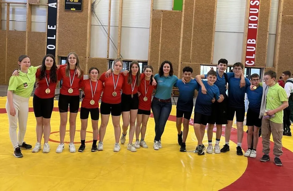 Une équipe de filles et une de garçons, soit treize élèves de l’association sportive du collège Henri-Delivet de Carrouges (Orne) ont participé aux championnats de France UNSS de lutte, qui se sont déroulés à L’Aigle (Orne) les 9, 10 et 11 mai 2023. Ils s’étaient qualifiés à L’Aigle fin mars, avec deux titres de champions d’académie.