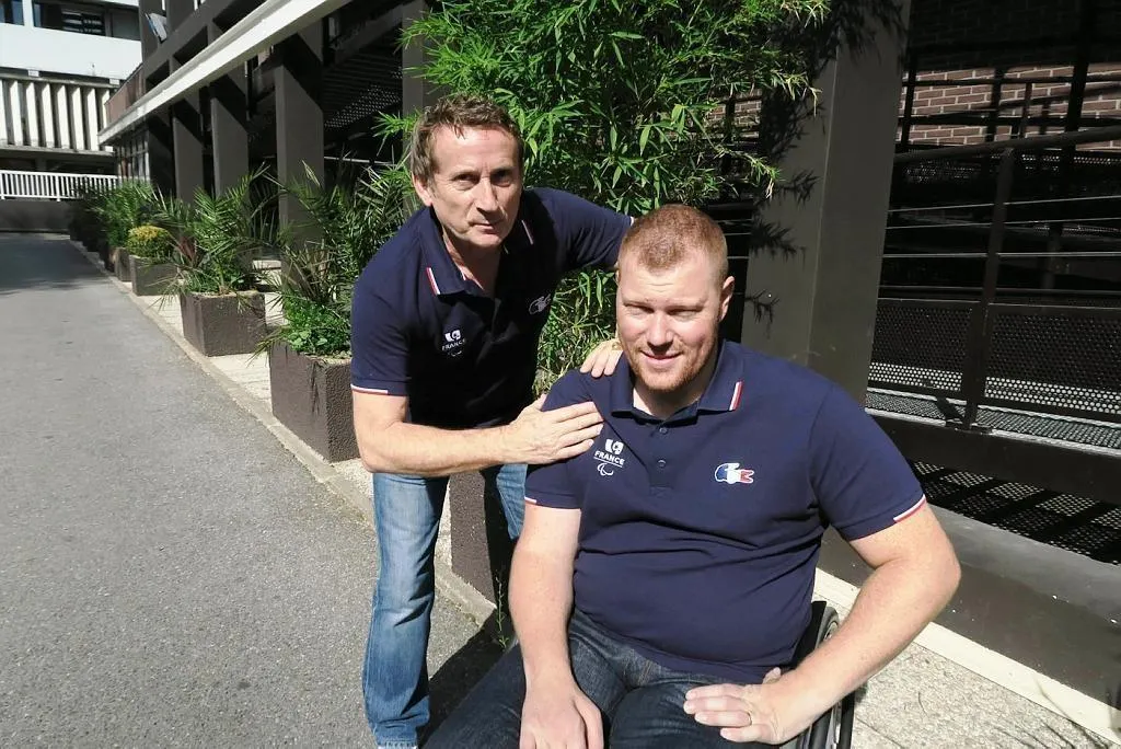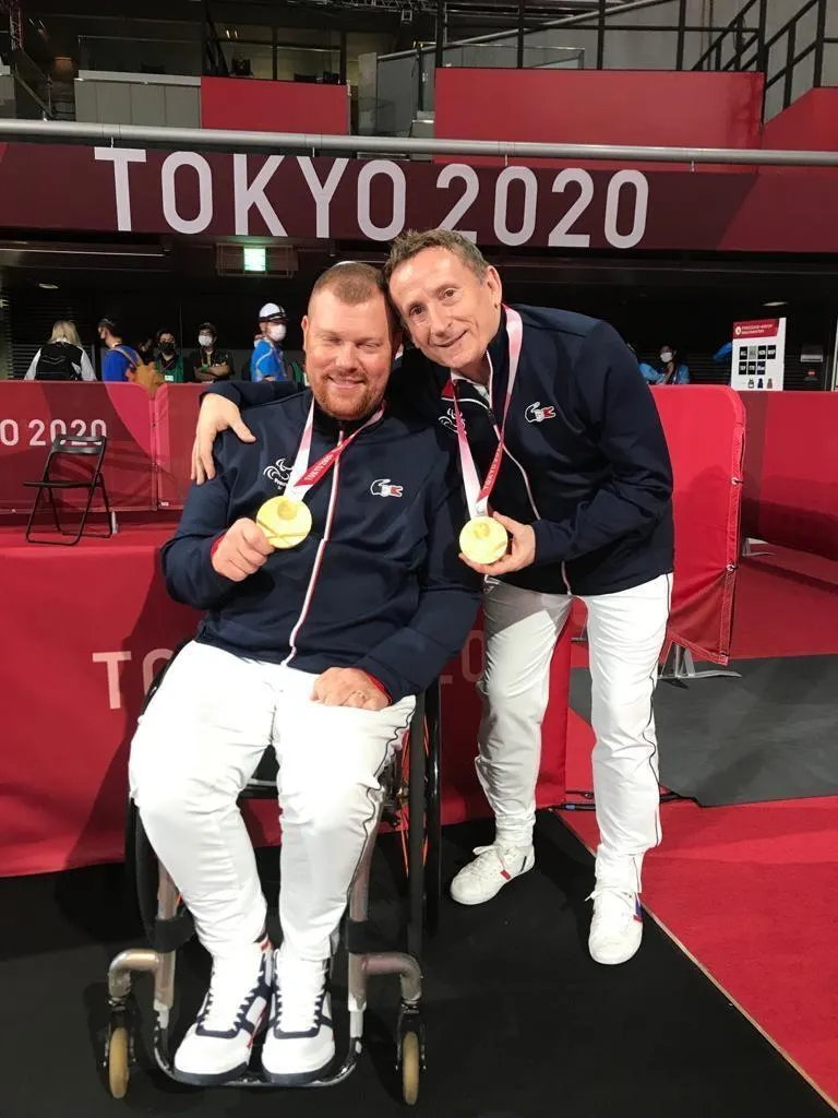 Michel Roux, auprès du pongiste Fabien Lamirault, double champion paralympique aux Jeux de Tokyo. © DR