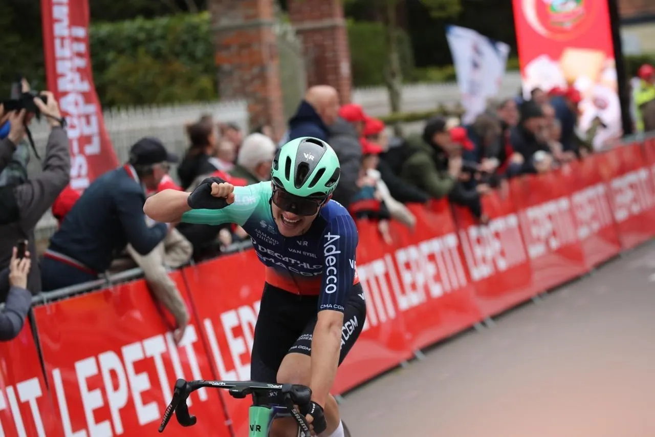 Pierre Gautherat (Decathlon CMA CGM) a remporté la 87e édition de Paris-Camembert, mardi 21 mars 2026, à Livarot (Calvados). Membre d’une formation qui sait gagner, le natif de Colmar, âgé de 23 ans, a su saisir sa chance quand elle lui a été donnée. Découvrez sa première réaction, après avoir levé les bras.