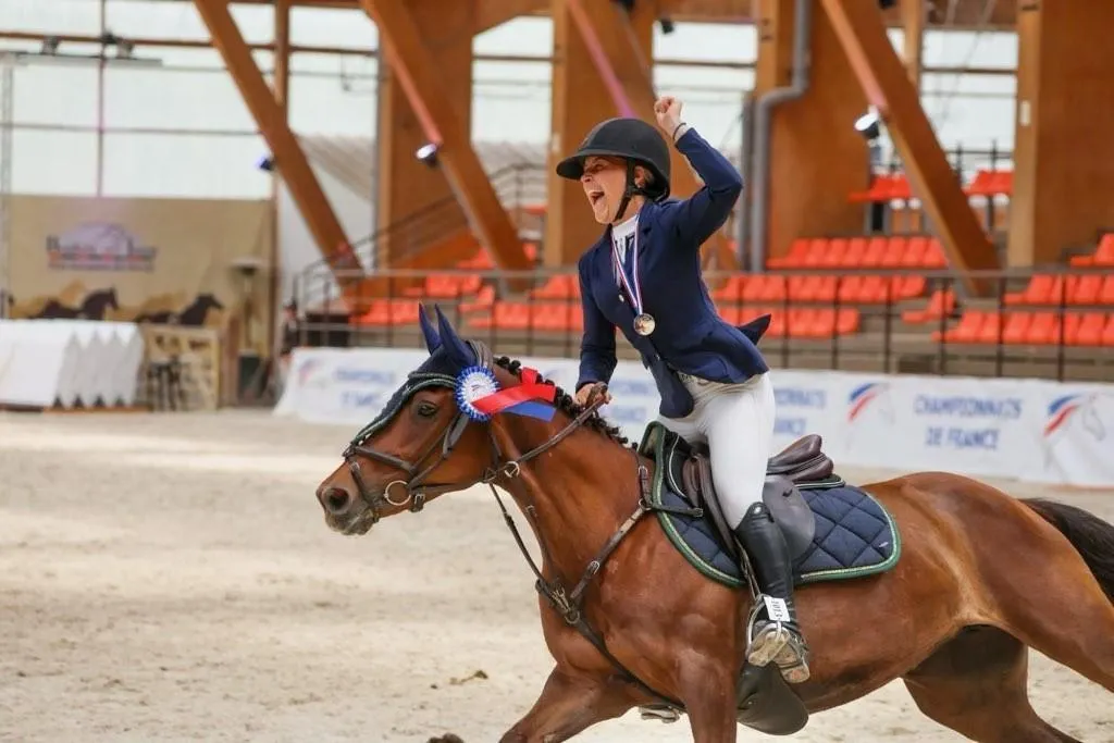 Léonie Salles, vice-championne de France 2025 de CSO (saut d'obstacles) catégorie amateur avec « Chivas des Perchers » sa jument. © Ouest-France