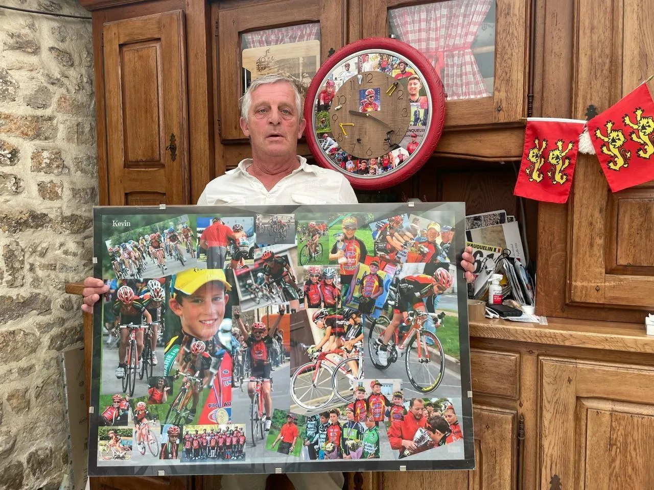 Les parents de Kévin Vauquelin affichent fièrement tous ses succès liés au vélo, chez eux. © Ouest-France