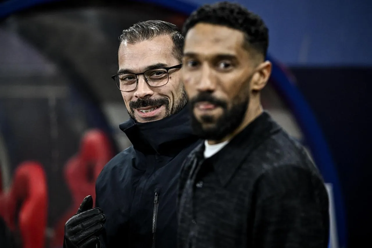 Le directeur du recrutement Reda Hammache (à gauche), ici en compagnie de l’entraîneur du SM Caen Gaël Clichy (à droite). © Martin ROCHE / Ouest-France