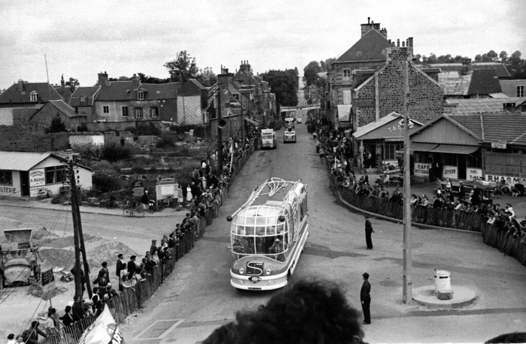 Dans les archives de Julien Guillaume (3/8). Journaliste à Flers pour Ouest-France, entre 1941 et 1981, Julien Guillaume ne sortait jamais sans son Leica. Comme ici, en juillet 1951, lorsque le Tour de France passe à Flers lors de la 6e étape entre Caen et Rennes.