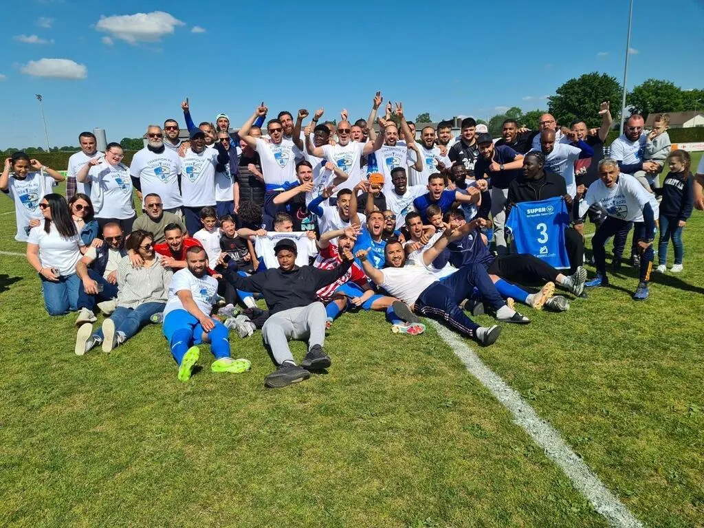 La joie des Hérouvillais, victorieux à Saint-Georges-des-Groseillers et promus en Régional 1. © Ouest-France