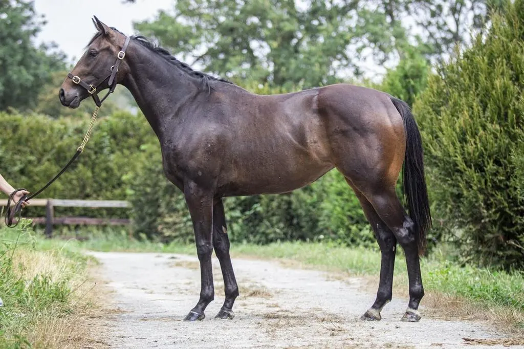 Promicea, pouliche de 2 ans du haras de la Beauvoisinière (Échauffour), un des 115 chevaux proposés aux enchères. © DR