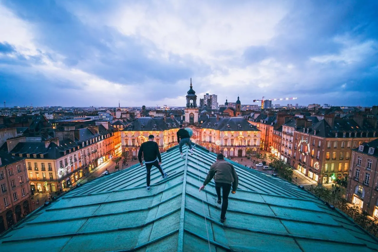 De 2019 à 2025, les Rennais du Wizzy gang ont régulièrement fait parler d’eux en escaladant de nombreux bâtiments mythiques de la capitale bretonne tels que l’Opéra. © Félix Orain