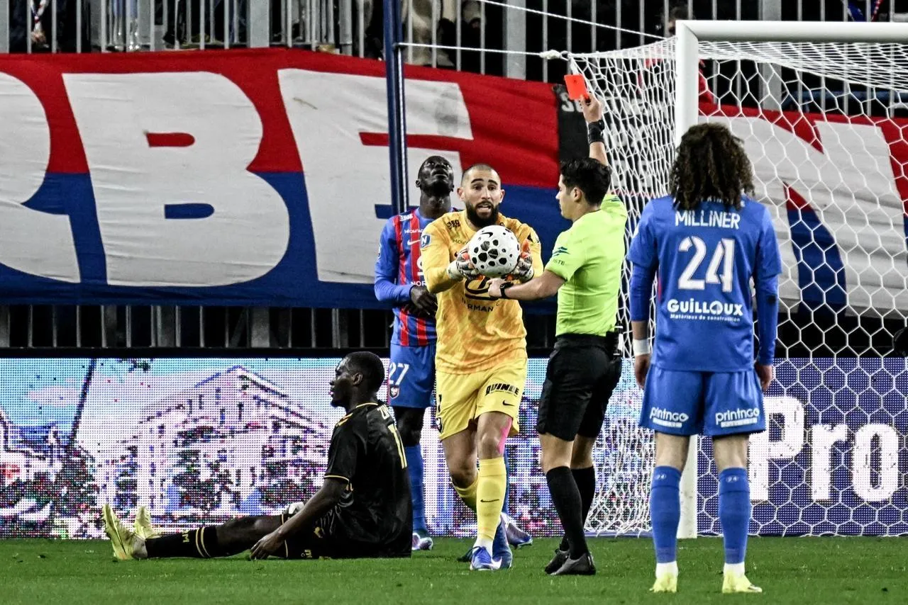 Anthony Mandréa et le SM Caen se sont retrouvés réduits à dix dès la dixième minute du jeu, après l’expulsion de Dieudonné Gaucho. © Martin Roche / Ouest-France