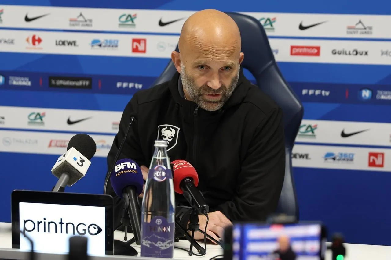 Maxime d’Ornano s’est exprimé en conférence de presse ce mardi 21 octobre 2025 après le match nul face à Rouen, lors du derby. © Charles Bury / Ouest-France