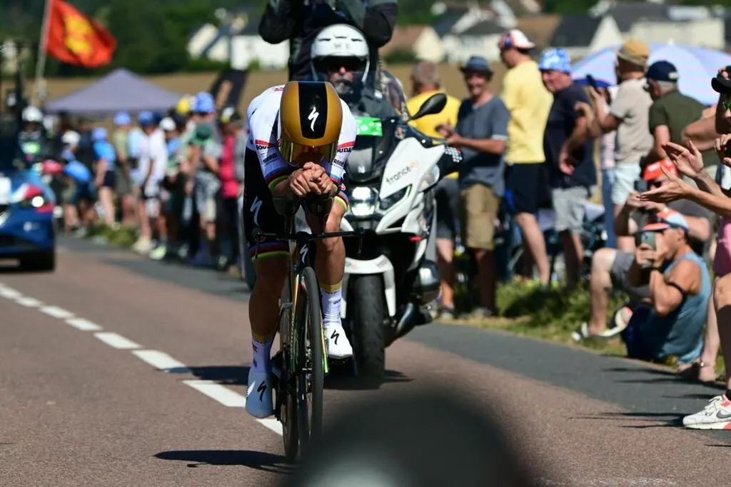 Remco Evenepoel lors du contre-la-montre autour de Caen, le 9 juillet 2025. © Esteban Bignon / Ouest-France