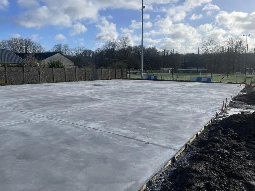 La construction d’un nouveau terrain de football à cinq au complexe sportif du Hazé a commencé début décembre 2024. © Ouest-France
