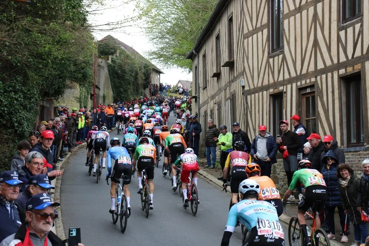 La célèbre course Paris-Camembert, qui s’est courue ce mardi 31 mars 2026, entre Magnanville (Yvelines) et Livarot (Calvados), et passée par Crouttes (Orne), où la côte de la Cavée offre toujours du spectacle. Reportage.