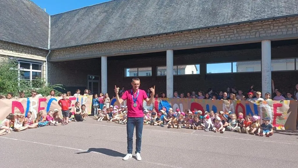 Arnaud Deceroit, directeur de l’école publique d’Écouché-les-Vallées, dans l’Orne, a fait son retour au travail ce mardi 24 juin 2025, après un week-end en d’Espagne où il a remporté les championnats du monde de duathlon master (+ 40 ans).